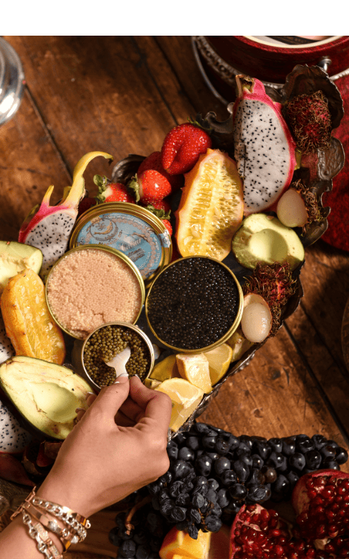 Indulge in our exquisite luxury caviar and saffron, a perfect blend of opulence and flavor.